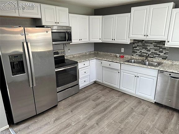 Welcome to this 3 bedroom 1 bath Ranch home conveniently located in southern Colorado Springs. The living room ha abundant light and is open to the kitchen/dinning area, with updated kitchen cabinets, counter tops, laminate flooring and stainless steel appliances. The rear of the home has a large back yard that is great for entertaining.! You have 2 extra storage sheds in rear yard; back is completely fenced off, cement patio with a pergola.