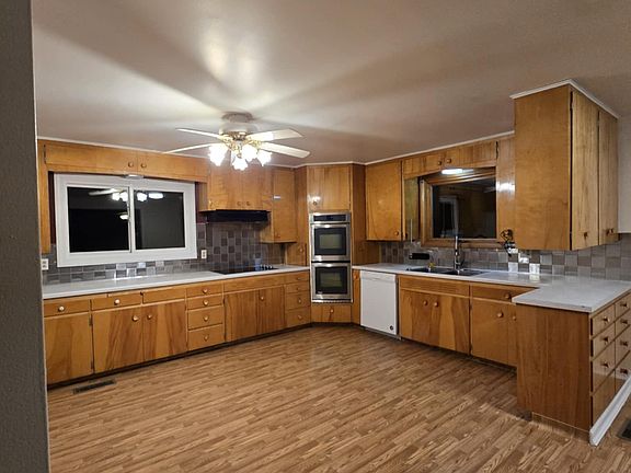 Country living at its best! Large living room, dining room and kitchen with 2 ovens! Spacious 3 bedroom, 2 bathrooms, with new carpet and flooring. Lot of closets and storage space. Full basement with a bar and wood stove, bathroom and another room that could be a craft room (?). Large shop with work benches. Non-refundable pet deposit and restrictions on some breeds. Tenants are responsible for electric and heat. Owner pays water and sewer. Lease is for 12 months. First, last, deposit, pet deposit, and non-refundable pet deposit. Restrictions on some breeds. Non-smokers. Shop is large enough to accommodate a car and truck. Close to schools and shopping.