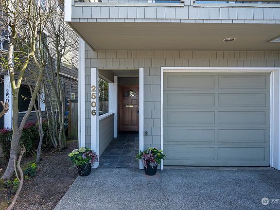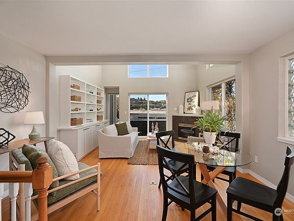 Fabulous warm and spacious townhome in convenient Eastlake location. West facing for watching Lake Union activity,and gorgeous sunset, mountain views. Open floor plan with soaring cathedral ceilings. Gleaming hardwood floors throughout main living area. Third floor master retreat boasts 5 piece bath, walk in closet and additional loft area perfect for office, den, or workout room! Bonus attached garage for privacy, security and extra storage. Central heat and air conditioning. Sweet patio, fully fenced for furry friends, relaxing and container gardening. No HOA. Only boats between you and the Lake!