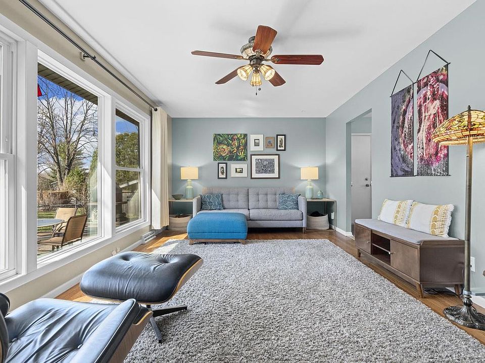This immaculate home is right in the middle of beautiful Prairie Heights, featuring gently rolling hills, mature trees, and a warm sense of community. Chock full of updates, this floor plan has 4 bedrooms, the primary bedroom with an attached bath, kitchen/informal dining area and a sunlit living area with large windows overlooking the nice backyard. Features all new windows and beautiful hardwood floors in living room and bedrooms. Finished lower level is the perfect hang out space to watch movies and play games. Laundry and plenty of storage or workshop space in lower level, as well. You'll have plenty of space to enjoy the outdoors on the large, mature lot. Close to the elementary school and parks, this home provides for relaxing, comfort and easy-care living.