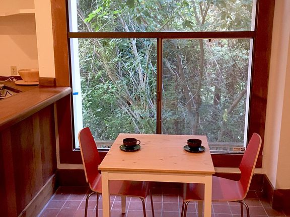 Large one bedroom, 1 bathroom, with built-in bed, high ceilings, large deck, and a view of tall redwoods. Easy freeway access (highway 13), 10 minute drive to UC Berkeley. Limited cooking appliances. Rent includes high-speed wi-fi. Available August 20th.