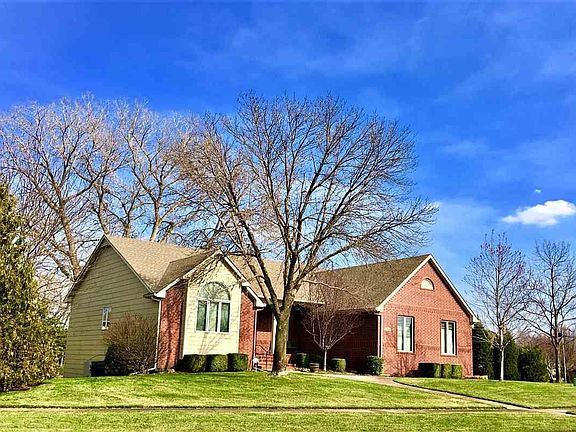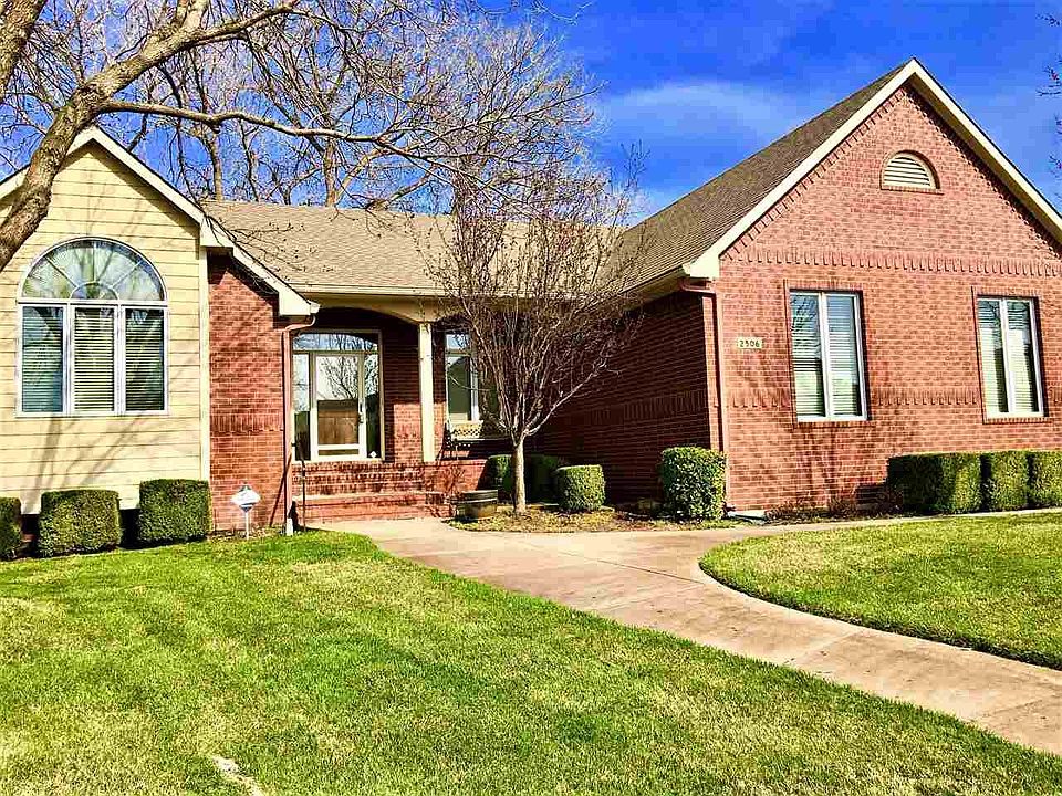 Spacious inviting 4 BR, 3.5 BA ranch in Horseshoe Bay Addition. Located on private lake lot with mature trees. Vacation living in the City! Beautiful lake views from all rooms on back of home. Large main floor master BR opens to deck. Open plan, entry hall, two-way fireplace, dining room with hardwood floor that opens to deck. Adjoining kitchen features hardwood floor, eating bar, pantry with roll out shelves, refrigerator, range, microwave. Main floor laundry has washer and dryer that stay. Convenient half bath is off of kitchen. Walk-out basement has fireplace, wet bar, built-ins, family room, game room, 2 BRs and bath plus safe room. Family room opens to covered patio. Three-car side-load garage has ample storage. Maize schools. Don't miss this fine home! (Estate Sale is underway March 27,28 & 29)