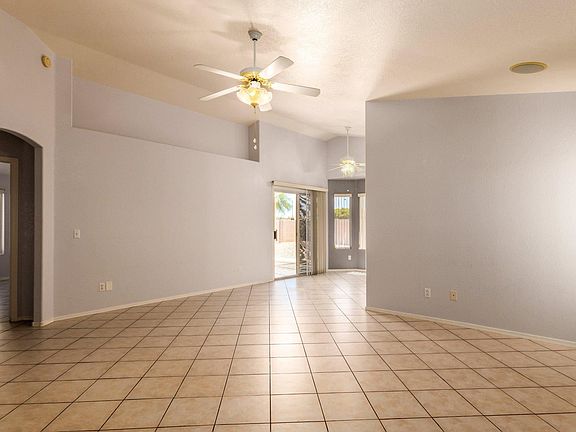 Nice curb appeal for this 3 bed, 2 bath move-in ready home. Enter to diagonally tiled floors throughout the home, vaulted ceilings and a spacious open floor plan. Family room has a cozy fireplace. The eat-in kitchen has plenty of cabinets and white appliances. Sizable secondary bedrooms have lighted ceiling fans. Master has private entrance, vaulted ceilings, two closets and a full bath with jacuzzi tub. Bedrooms and back patio wired for stereo. Garage has attached cabinets. The backyard is HUGE! has a covered patio, extended Ramada and is ready for you to add your personal touches. room to add a play pool! Easy access to shopping, dining and the 202.