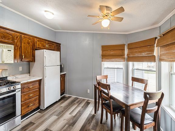 Homes been updated over past year & ready for new family. Interior has new wood plank flooring, all walls painted & popcorn ceilings replaced. Kitchen has new countertops, sink, faucet, disposal, & re-stained cabinets. Primary bathroom has new walk-in shower & tile surround. Has a two car insulated & heated garage with workbench & next to storm shelter & walking path. Appliances; fridge, microwave, dishwasher, range, washer, dryer, water heater, furnace/ AC.. garage furnace. 2024-09-10