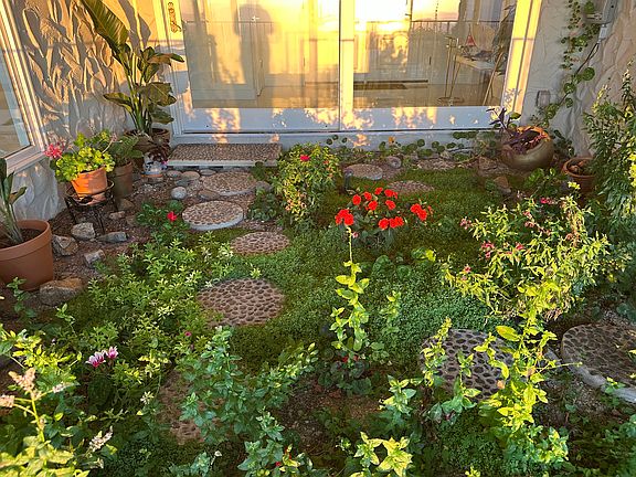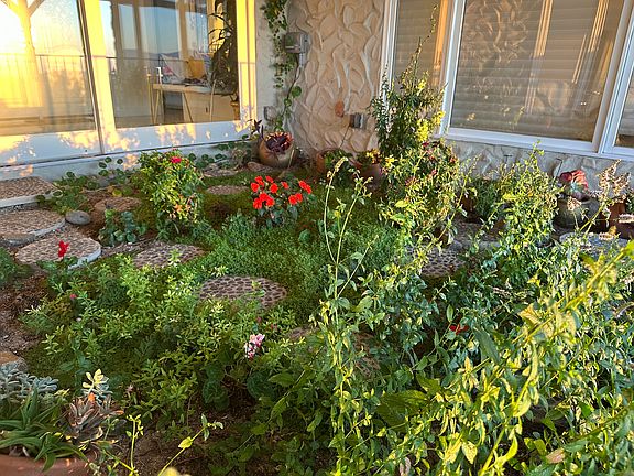 Organic fruit treesStone staircaseDual-sided gas glass fireplacePanoramic viewsSpacious backyardQuaint covered front porchFull wall of windows