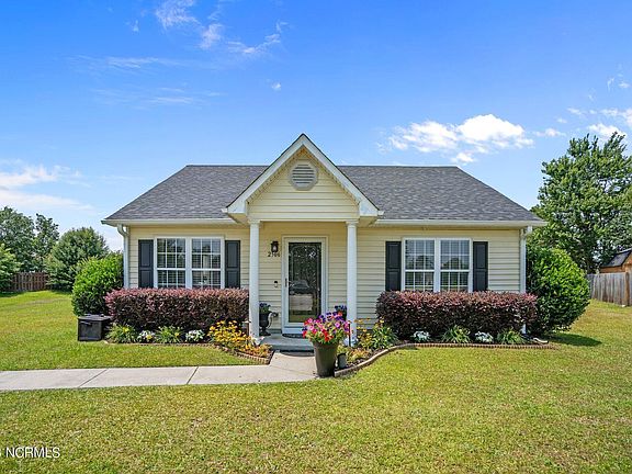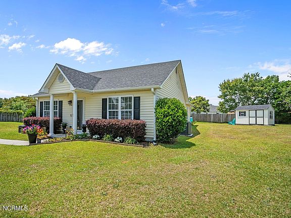 Immaculate like new home close to shopping and the beach. On a large cul-de-sac lot, this home has bamboo hardwood flooring throughout and Updated kitchen with stainless steel appliances and granite countertops. Bathroom vanities with granite countertops and tiled floors. Roof 2021 ad Heat Pump 2022-Bright and airy with an open floor plan and vaulted ceilings make the home a must see! Screened in back porch is a perfect place to relax or enjoy your patio. 3 Bedrooms 2 Baths -Wired Storage Building (but not connected)