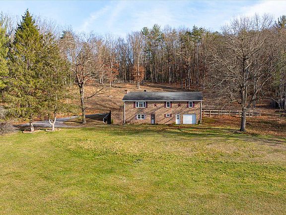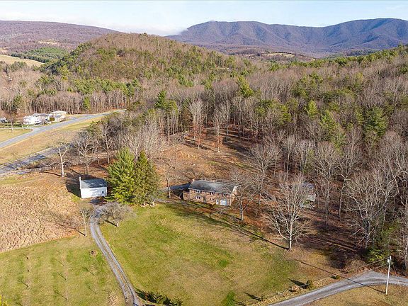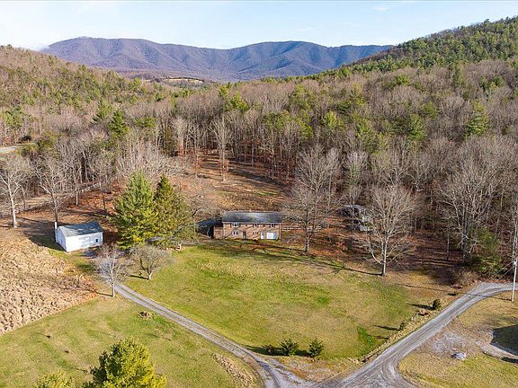 Wonderful opportunity for a beautiful home with impeccable views and absolutely perfect location. All brick raised ranch with 3 beds and 2 full baths overlooking your 5 acres with a sprawling mountain backdrop. Large unfinished basement with stone fireplace gives opportunity to add space and storage. Separate basement garage allows for the perfect workshop or space for toys while the oversized detached garage can house much larger toys. Newly fenced backyard will keep the kids and animals close and safe allowing them a private area for play. This home makes an amazing primary residence or would lend itself to be the perfect AirBnB. With its location bordering the ziplines and within walking distance to Jellystone Park this could be a vacation money maker with entertainment right in the backyard.