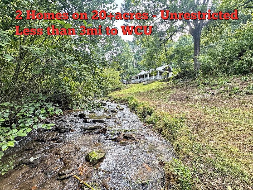 2 Homes on 20+ Unrestricted acres in Cullowhee near WCU. Owners have done many tasteful renovations & repairs to both homes within the recent years. The cabin was built in 1930 & has a 2 Bed, 1 Bath layout with a large living room w/ woodstove & attractive built-in shelves, nice bathroom, new beautiful kitchen, laundry/utility room, big covered porch over looking Wayehutta Creek below. The upper house was built in 1952 & also has a 2 Bed, 1 Bath layout with attractive finishes. The home has an attractive living room with woodstove & tongue/groove ceiling, spacious bathroom with adjacent laundry space, entry foyer with built-in closet space, large kitchen with dining area. The property has gated access with paved driveway & parking area. There are multiple outbuildings for storage. The 20+acres is private & has an access road leading up to the upper acreage. The upper acreage has some good potential homesites w/ amazing views in multiple directions offing short range & long range views. This property has great location to a few local attractions making it a little more unique than other properties on the market. Less than 3mi to WCU making this a great investment property option.