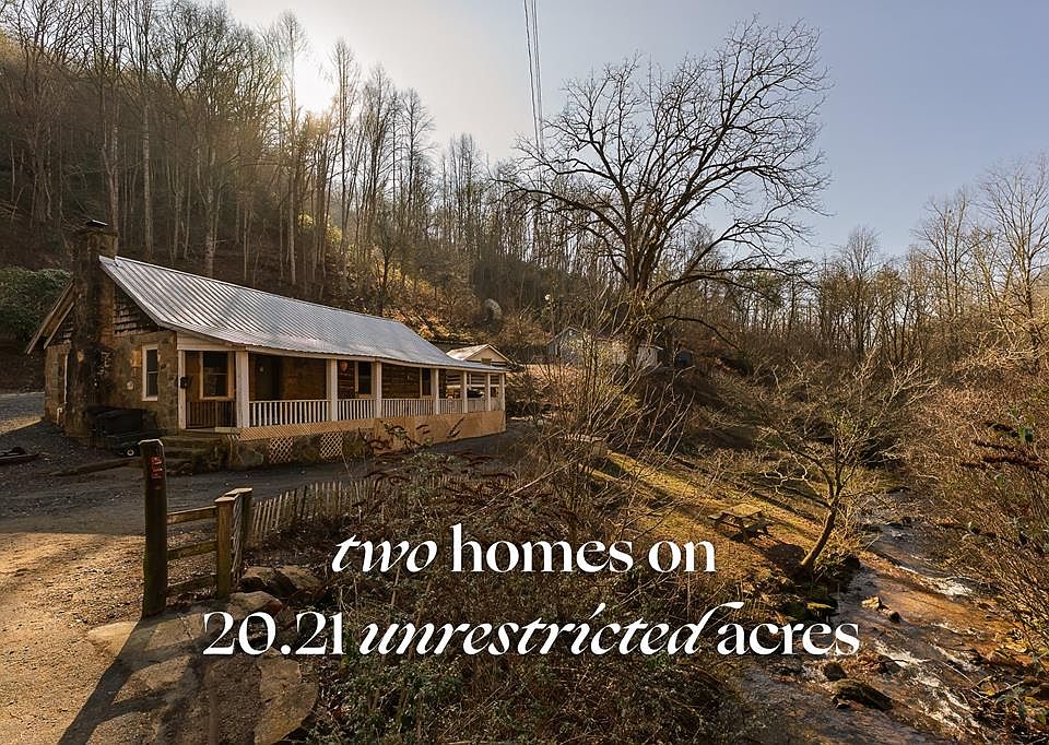 Two homes on 20+ unrestricted acres in Cullowhee offer privacy, versatility, and strong rental income potential just minutes from WCU. Fiber internet available. Both homes feature central heat and air with recent upgrades, including plumbing and mechanicals. The lower log cabin (2BR/1BA) was taken down to the studs and thoughtfully rebuilt, blending modern updates with preserved charm. Refinished oak kitchen counters crafted from wood salvaged from the original 1930s cabin keep the heart and story of the home alive. Spacious living room with wood stove, built-ins, updated kitchen, laundry/utility room, and a large covered porch overlooking a loud, rushing creek create a peaceful mountain setting. The upper home (2BR/1BA) offers a great layout with a welcoming living room, wood stove, tongue-and-groove ceiling, entry foyer with built-in storage, spacious bath with adjacent laundry, and a large kitchen ready for updating with newer appliances already in place. Property includes a productive garden area, apple, peach, and cherry trees, plus a private hiking trail ideal for afternoon walks in your own backyard. Paved drive, ample parking, and multiple outbuildings.