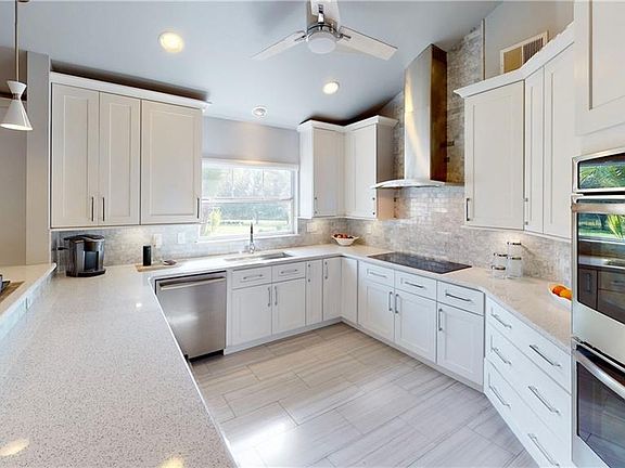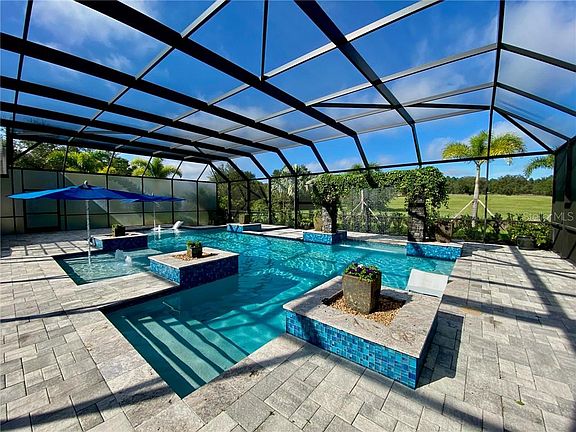 *View this home 24-hours a day with our 3D virtual tours* 5 Acres - Newly Constructed in 2014 - Expansive Outdoor Pool Entertainment area added in 2016 - No HOA - Energy Efficient - Custom Home - All rooms (except the media room) on 1 level. Appraisal & Inspection Complete. We welcome you to experience an exciting home featuring a floor plan suitable for everyone. You won't find another home nearby offering excellent features like a custom-designed & automated rain-waterfall pool with two dedicated heaters, modern upgrades, steam shower, wood flooring, an abundance of closet space, and a home on 5 acres with plenty of room for expansion or possibly build a solar farm. This home is designed with everyone's comfort mind, even your pets, who will enjoy their private area, including a shower, patio & fenced space. Stone columns, black metal fencing, a brick-paver driveway, and large palms offer a delightful first impression as your guests drive up to the massive porte-cochere. Lapis Blue front doors open to a fantastic open living plan & direct view of the 21 x 48 covered patio, and 50 x 55 Screen enclosure covering the 26 x 46 heated pool. The open living & dining areas offer high ceilings, a wet bar with wine refrigeration, and a fantastic kitchen, all centrally located and enjoyable. The kitchen features stone counters, 42" cabinets, marble backsplash & Double 30" "True European" Convection ovens with Wi-Fi smartphone functions, "Ten-Pass" Separate Baking & Broiling, and upgraded Self-Cleaning. A large cooktop, across from the built-in microwave, is adjacent to the S/S farmers sink & big window looking out onto a huge front lawn. Off the living areas are 3 hallways: 1st to the Primary Suite with Spa bath, patio/hot tub access, private office & private fenced courtyard with pool access. The 2nd hallway to the lounge with wet bar, independant ventilation system, adjacent 15 x 26 family room with diagonal 24" checkerboard porcelain tile & dry bar, and then to the 2nd bedroom suite with a custom private bath featuring glass tile & seamless glass large walk-in shower. In the 3rd hallway, you have a choice. Either turn right up the stairs to the media room pre-wired for sound, offering a guest 1/2 bath & fun custom wallpaper. If you go left, you will find the laundry room, homeschool room, Gym, Game room, 3rd & 4th bedrooms, 3rd full bath, Mud/Craft room with 42" cabinets & sink, 3 car garage access, and then to the pet suite with pet shower. Nearby the coat closet & "Tiki Room" 1/2 guest bath is the Primary suite with wood flooring, 2 large walk-in closets with custom built-ins, vaulted ceiling with multiple-LED lights, Plantation shutters, and access to a beautiful bath. A recessed jetted soaking tub is surrounded by marble and looks upon dual vanities with granite, large mirrors, pleasant lighting, and a substantial seamless-glass walk-in steam shower with a comfort bench. Adjacent to the suite is a private office with built-ins, extra closet space, additional foyer/dressing area & a private fenced courtyard. The enormous back patio, wired for sound, is accessible from 4 different areas of the home. The pool is FUN! Bubblers, tanning decks, built-in umbrellas, rain water-fall, and a beautiful Blue Bimini surface. There is a massive hot tub with lighting & sound. All doors and windows are double pane for energy efficiency. New hospitals, the 429 & turnpike are nearby. Other features: plantation shutters in each room, central vac & 3 HVAC's.