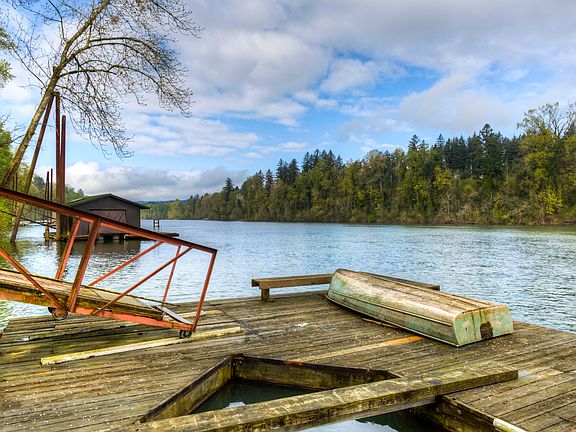 BACK ON MARKET!! 1.28 acres on the Willamette River with a Private Boat Dock/slip and approx. 175' of River Frontage. Surrounded by upscale homes and on a private drive. Doesn't get any better than this along this stretch of the River under 600k!! Mid-Century custom home, Lots of Character, some upgrades and some updating, Brazilian Cherry floors in Master Bedrooms, heated floors in bathrooms, breathtaking showers and tile work, 4x6 rough cut beams with tongue and groove ceiling. Newer roof, windows, skylights, gutters, interior and exterior paint and more. 3 car attached garage and a 6+ car detached shop (44'x36'!!) for the enthusiast or collector. Less than 2 miles from the Boones Ferry Boat launch/ramp/marina and I5. Gated/fenced property (w/exception of the River side). Come take a look this Saturday (4-25) between 1 and 4.