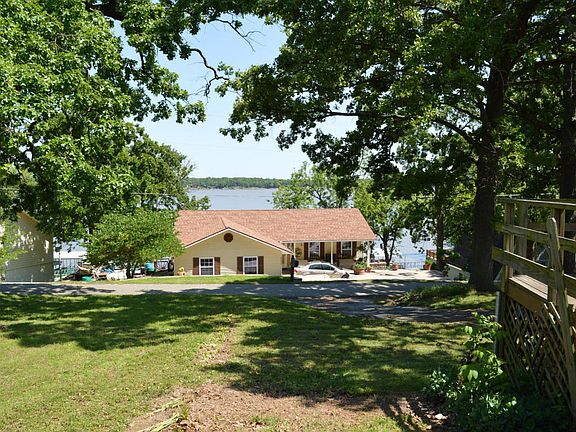 LAKE VIEW HOME. Enjoy grand lake views from the large front deck. 3 BR, 2BA, 3-car garage and 2 living areas on 3 lots, all with shade trees. A fantastic insulated 3 car garage/workshop (30 ft x 40 ft). Circular drive provides plenty of room for parking. There is room for boat and/or RV. Fourth lot available.