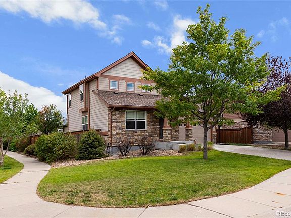Great opportunity to gain instant equity – this is the resale portion of a buyout property process – take advantage of the perfect balance between the move in equity and a fantastic home on a corner lot! Near shopping, dining, parks, and trails, never be sort of entertainment. New interior and exterior paint, new carpet, and class 4 shingle installed on the roof in 2023. This home welcomes you into the bright great room with high ceilings and brings you to the kitchen featuring a large center island and access to the outside. Head upstairs to find the primary bedroom with attached private bathroom and walk-in closet, two secondary bedrooms, and a full bathroom. Bring the entertainment outside and relax on the concrete patio surrounded by grass in the fully fenced backyard. Near all major routes make the commute to Denver and DIA seamless. Don’t miss this amazing opportunity to gain instant equity!