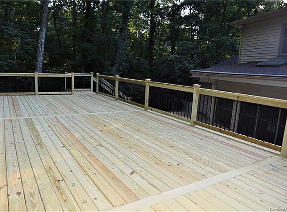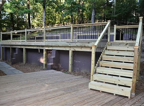 Fantastic opportunity in Tega Cay. Lovely updated home w/2 car garage PLUS a separate 2 car garge. Two parcels were combined into one parcel! The stand alone garage with almost 800 square feet plus attic storage sits on a lovely wooded lot adjacent to the home. Very private location on a quiet wooded lot in Tega Cay. Fantastic floor plan w/remodeled BR & BTH & California closet on main level. Gorgeous great room with fireplace and finished on site hardwood floors that were recently refinished. Dining rm converted into a sitting area w/ bar w/new cabinets & counters. Updated kitchen w/ painted grey cabinets, granite counters, tile backsplash & Wolf gas cooktop. Completely remodeled master & 1/2 bath & upstairs bath. Basement recently painted, recessed lights added & new flooring installed. Upstairs are 2 LG bedrooms, remodeled bath and walk in storage area. FABULOUS new deck in back yard perfect for outdoor living. If you want privacy this is the home for you! Mountain feel!