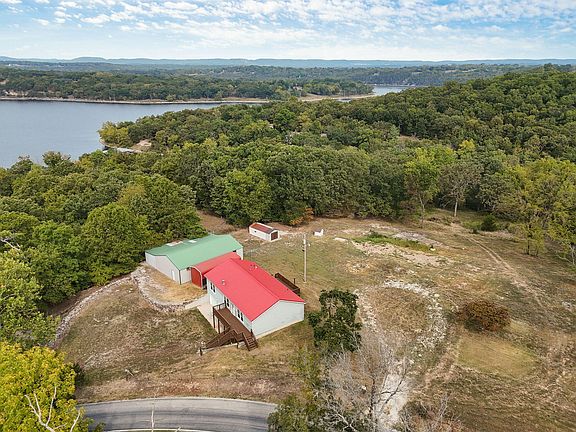 Escape to your own private retreat with this stunning 5.2-acre lake property! This charming home features 3 spacious bedrooms and 2 bathrooms upstairs, along with a convenient garage downstairs and more space. Enjoy a freshly painted interior and new carpet throughout, making this home move-in ready. Outside, you'll find an RV carport, a large storage shed, and a massive shop perfect for any hobbyist or outdoor enthusiast. Located just a half-mile from Kings River Marina, it's easy to drop off your boat and enjoy the water. Plus, it's a short drive to the renowned Dogwood Canyon, owned by Johnny Morris, founder of Bass Pro Shops. Don't miss this rare opportunity to own a peaceful getaway with endless possibilities!