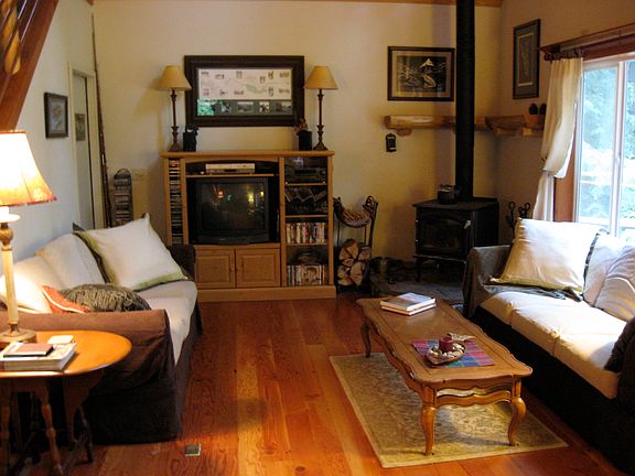 Secluded custom built chalet with many unique features created by owner/builder. Living, kitchen master and laundry on main floor, open loft with 2 bedrooms and full bath upstairs, wood stove plus furnace, 600 sq ft wrap around deck, covered front porch. AND....a full daylight basement/garage which is very unique in this area do to ground water table. House located in the gated neighborhood of Arrah Wanna bordering National Forest, BLM park and the Salmon River.