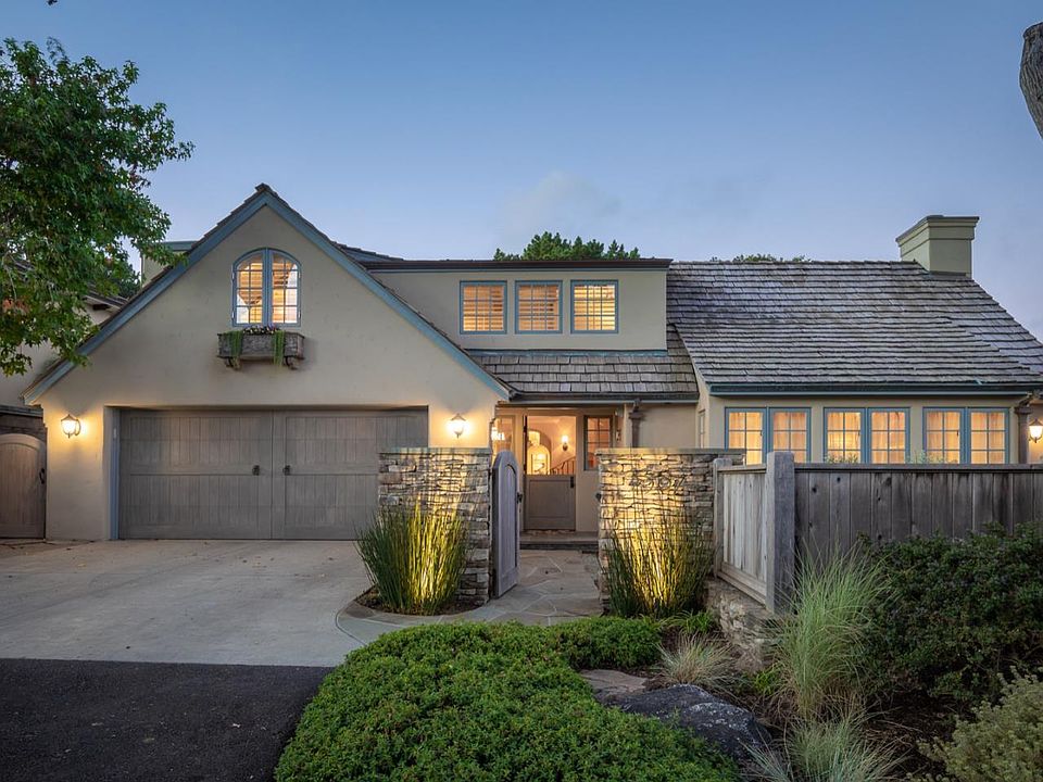The Best of Carmel Point- a gracious 4 bed 3.5 bath home located on a quiet street, large private lot that offers amazing indoor-outdoor space featuring Valley and Mountain Views, 958sf central courtyard and fireplace, a 2nd private garden w/dining patio under a pergola & heat lamps, and additional large open space for an incredible garden or kid's play. Understated elegance permeates this Eric Miller/Carroll & Strong remodel- an inviting vaulted and beamed living room w/fireplace and wet bar opening onto the large courtyard, charming great room featuring a large fireplace, family room, dining area and kitchen with easy access to both courtyards, 2 spacious master bedroom and bath suites w/fireplaces, 2 more bedrooms, lovely powder room, a large office, 2-car garage and amenities galore, including a dry sauna, 2nd floor laundry and a sustainable solar powered electrical system. Unique for Carmel Point- a short walk to 2 beaches, the sound of the waves to lull you to sleep- a MUST see!