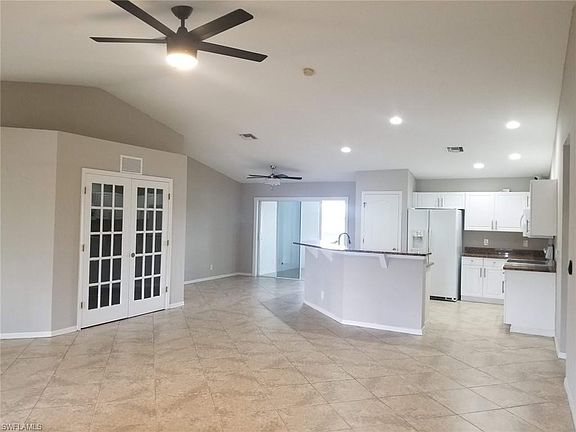 Hop, Skip and a jump to Ft Myers/Daniels Pkwy Corridor. See to appreciate this one!! Home has a ton of space. The home was remodeled and permitted. It is 4 Bedrooms plus den. You may use the space in several different ways to fit your lifestyle. Kitchen offers granite countertops, Whirlpool Appliances, Reverse Osmosis drinking water and Pantry. The Main Living areas are tiled on a diagonal. All Bedrooms are Luxury Vinyl Plank and are beautiful. Enjoy the inside Laundry room with Washer & Dryer and Cabinetry. Home comes complete with Night Owl Security which includes 4 cameras. Roof was replaced in 2018. Newer 20 Seer A/C with Dual UV Disinfection System along with an air purifier that runs into the duct work, eliminates household odors and kills airborne bacteria and viruses. Another excellent feature is its whole home Surge Protection. Part of garage converted to a guest suite with Kitchen. Can easily be converted back to garage. Home is located on a dead end road and is a very quiet neighborhood. This home offers so much space that you must see it as it's indescribable!