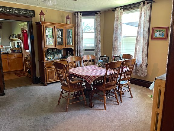 Affordable 2 Story, 4-bedroom 2-bathroom home in the heart of Peru. This lovely home features a charming foyer with a staircase to the upper level with all original woodwork, the dining room & living room are combined, there is a eat in kitchen with newer cabinetry and a large island. There is a main level bedroom and main level bathroom. The upper level includes 3 bedrooms, a bonus room and a1/2 bathroom. C/A & Forced air on the upper level, the main level has hot water heat and window A/C. The exterior is steel siding, there are all replacement windows, a large covered front porch and a deck.