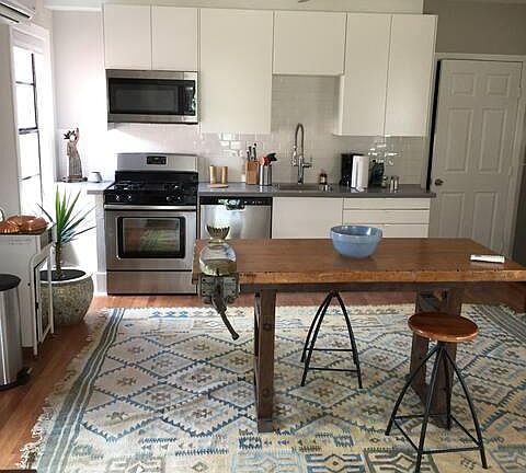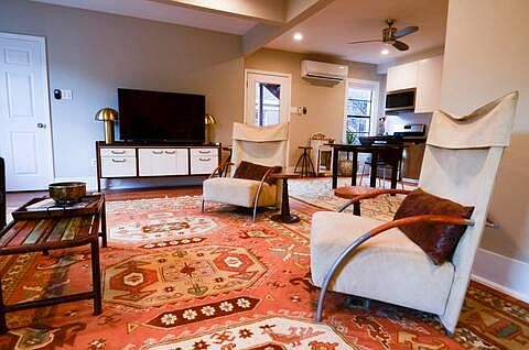 There is one off-street parking space for the unit accessible through he alley, but free street parking is available in front of the house for additional vehicles.
