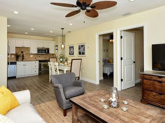 Exquisite, completely remodeled cottage located just a short walk to the beach. The cottage offers 2 bedrooms, 1 bath, top of the line amenities and tasteful decor. Kitchen has granite countertops and stainless steel appliances. This property has wireless internet, a large flat screen TV in the living room and smaller flat screen TVs in both bedrooms. You are just 150 yards from the beach and 145 yards from the bay. Neighborhood has a public, bayfront park to launch a kayak or paddle board and a playground. Also available for rent on a weekly basis. Terms can be discussed if interested.