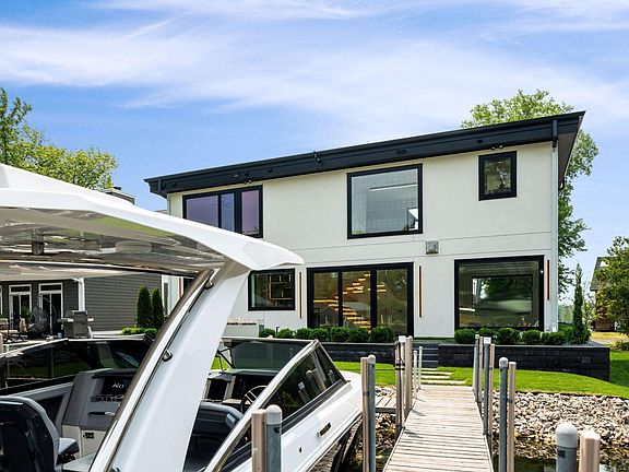 Stylish modern design on Lake Minnetonka. This exquisite home features clean architectural lines and walls of glass flooding the interior with natural light. High-end finishes, an open design and extensive LED lighting set the mood while seamlessly connecting to the outdoor living space and evoking the feel of life on the water. The center-island kitchen includes an additional support space and thoughtful cabinet plan. Upstairs, you’ll find three ensuite bedrooms including a stunning primary suite with a spa-style bath and walk-in closet. The heated garage includes custom cabinetry, epoxy floor and an EV charging station. Clean, deep-water dockage suitable for multiple boats. Located just minutes from downtown Wayzata, this home is potentially available furnished—perfect for those seeking a luxurious, move-in ready retreat on the lake.