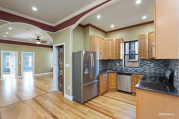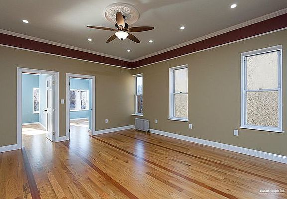 No brokers' fee. Available September 1st. Craving a truly spacious apartment in great shape and with three exposures? Come and give your appreciation to this RARE, oversized, fully renovated 4 bedroom, 1.5 bathroom gem. It features new oak flooring, crown moldings, and 10FT ceilings. The huge, airy living room has recessed lighting, and a ceiling fan. The windowed kitchen has generous granite counter space, ample cabinetry, and high end stainless steel appliances, including a dishwasher and microwave. A spacious dining area fits a large table. A new washer and dryer in the unit will save you valuable time. All the bedrooms are a good size, with their own closets, and ceiling fans for your comfort. Heat and hot/cold water are included in the rent. One cat is Ok. Sorry: no dogs.