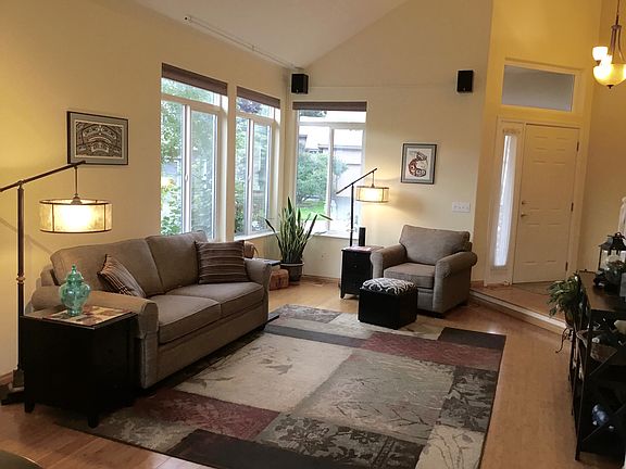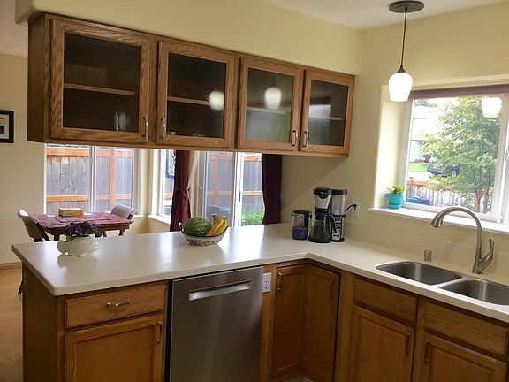 1822 sq. ft., 3 bedroom, 2.5 bath home with lots of natural light on a nicely landscaped lot with a large covered front porch and raised garden beds in the back yard. Located in the Southport area in South Anchorage. Quiet, established Edgewater neighborhood with common area access to the bluff only one block from home, walking trails and parks near by, underground utilities in this nicely maintained planned community. Kitchen on ground floor means no packing groceries upstairs! All newer stainless steel appliances with pantry storage, a large counter height breakfast bar. Formal living/dining areas, family room with wood burning fireplace. All bedrooms on 2nd floor, French doors open to large master bedroom, master bath has large double shower and double vanity. Chugach mountains view from the dining room, kitchen and two bedrooms. Two car garage with work bench, storage cabinets, and lots of sturdy shelving. Room to park 3 vehicles in the driveway. Large front porch, mature shrubs and trees. Phone 787-9527 to make an appointment.
