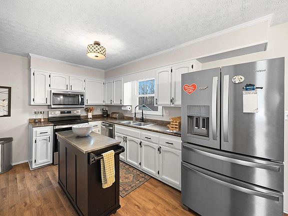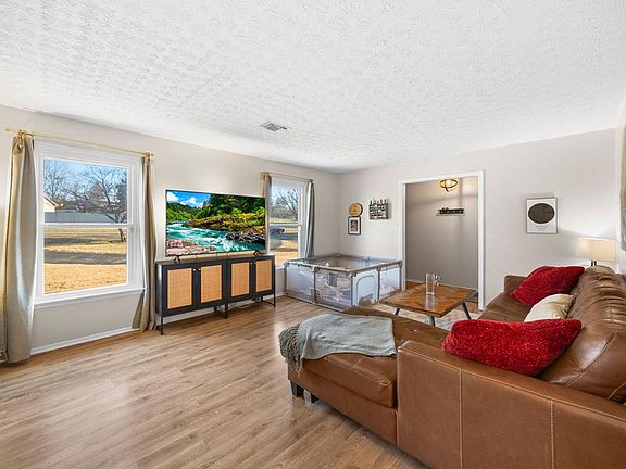 Charming all-brick ranch home with finished basement, 5 garage bays, and 1200+ sq. ft. shop. The open living and dining area features freshly painted white cabinets stainless steel kitchen island, and new appliances. The primary bedroom offers an en-suite private bath with custom tile shower, granite vanity, and clothes closet. Two guest rooms and a guest bath complete the main floor. The finished basement includes a fully equipped theater room, office space, ample space for a game or hobby area, and 2 car garage. Outside enjoy a fenced backyard with RV access, 50-amp hookup, and convenient septic clean-out. The expansive shop includes 3 garage bays, electric, rough-in plumbing, and loft storage. Recent updates to property include new garage doors, light fixtures, stainless steel appliances, and HVAC in basement. A perfect blend of function, space, modern updates, and versatility. Total sq footage include finished basement