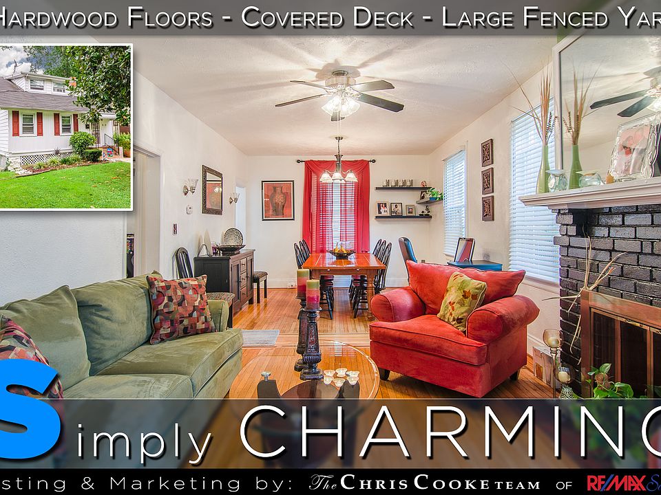 CHARMING COTTAGE WITH 3 FINISHED LEVELS AND LARGE FENCED YARD! Hw floors throughout, Living room w/ wood burning fireplace, separate dining room, updated eat-in kitchen w/ ss appliances, main level family room, entry level bedroom, updated baths, Master suite w/ full bath, finished basement w/ rec room, covered deck overlooking large fenced yard & driveway parking for two cars.