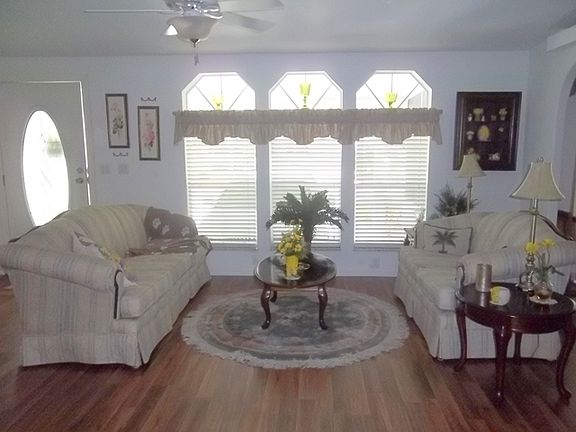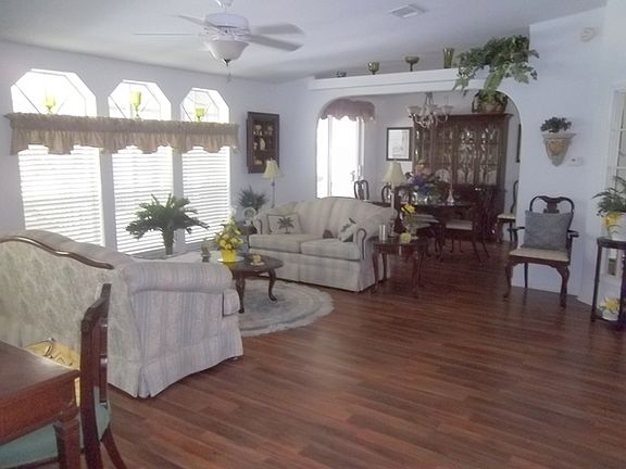 A quality home on Cloud Nine all ready for you with its own Golf Cart! Newly installed quality wood flooring 8/20/13, upgraded appliances 2012, golf cart garage/workshop, enclosed lanai, double wide painted carport and a lovely landscaped lot all in Central Floridas Premier Park, Tanglewood. SB1237 Over 700 homes available at http://www.fourstarhomes.com