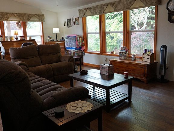 Homey Log-Cabin Style 3 bed/2 bath manufactured home in Pony Creek Estates with easy care landscaping. Kozy fireplace and large kitchen for all your entertaining needs! Master suite boasts a deep closet, soaking tub and separate shower. Home filled with beautiful stained alder cabinets, trim, and doors. Great location in a 55+ community near medical facilities. Call your agent for a showing today!