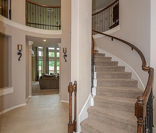 Gorgeous home in gated community with no back neighbors! Brick & stone exterior, 4 bedrooms, 3.5 baths, gameroom & media room. Grand rotunda entry w/curved staircase & wrought iron spindles. Two story family room w/wall of windows & cast stone fireplace. Kitchen w/42''cabinetry,island w/breakfast bar & butlers pantry. Spacious master suite on 1st floor. Granite countertops throughout. Many energy features. Sprinkler system Covered back patio. Greenbelt located behind home. A must see!