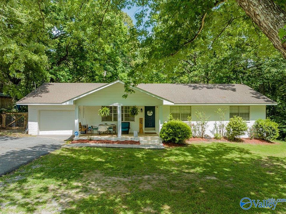 Updated and move in ready home in Guntersville city limits. This 3 bed 2 bath home has over 1500 sq ft with stainless appliances. Commercial grade stove and vent and butcher block counter tops in kitchen. LVP flooring throughout with all newer fixtures. Only steps away from local shopping and lake access. Newer roof and hvac. Fenced in back yard and 1 car garage. Let’s make it happen!