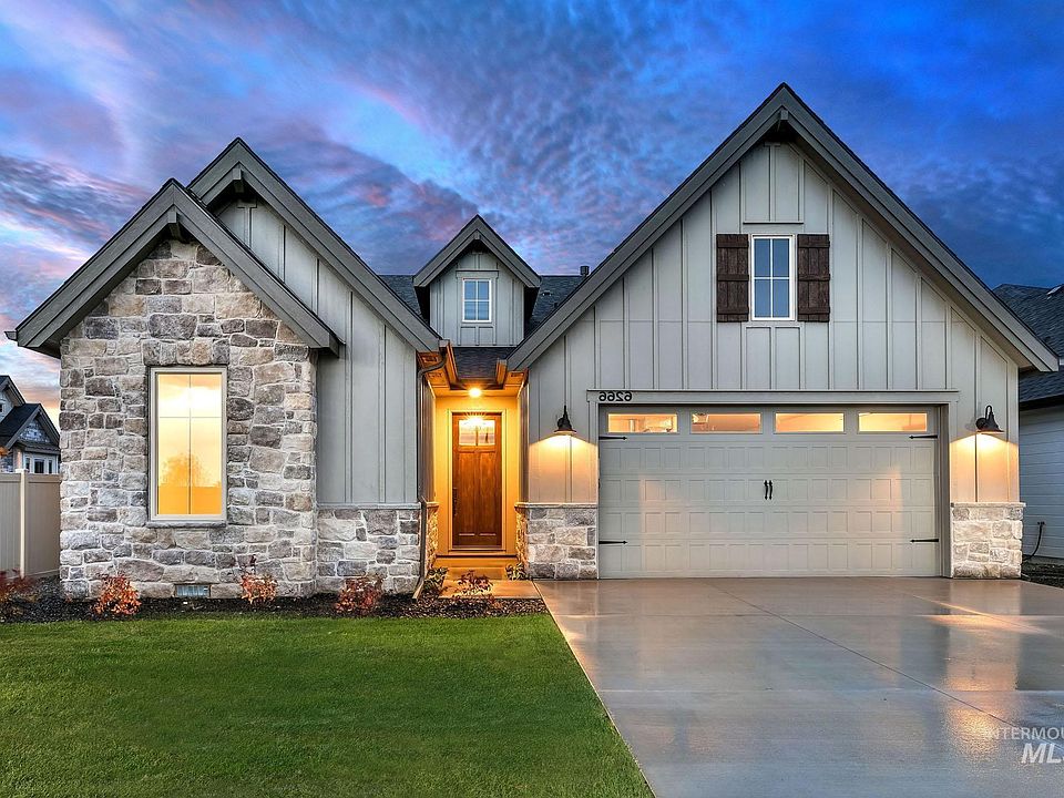 Chandler model | Blackrock Homes. DO NOT GPS, FOLLOW THESE DIRECTIONS: S on Eagle Rd past Amity - W on Taconic thru SkyMesa /Lt at Cyanite/Lt at Brace/Rt at Bosch to East Ridge Village. LAKE HAZEL RD IS CLOSED. See Pic #2 for a map..... DECORATED MODEL! Move-in Ready! 55+ Community! You'll love the extra large kitchen with custom cabinets & Quartz countertops & walk-in pantry. Fully landscaped & fenced, private yard. Neighborhood park w/ covered gazebo and a fenced dog park area. Close proximity to Discovery Park, South Meridian YMCA, a new Albertsons and several golf courses. Pics and virtual tour are similar, furnishings not included.