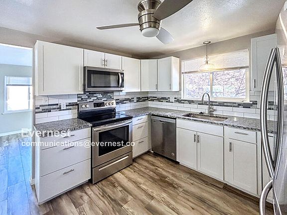 Welcome to this spacious and inviting single-family home, perfect for those looking for modern comforts combined with serene living. This 4-bedroom, 3-bathroom abode boasts a generous 2,356 square feet of living space, offering ample room for both family and guests. The property's interior is tastefully appointed with amenities such as a refrigerator, range, dishwasher, and microwave to make everyday living convenient and efficient. Designed to accommodate your lifestyle, this home also includes washer/dryer hook-ups, ensuring you stay comfortable and organized day-to-day. The attached garage offers additional storage and parking convenience. Step outside to enjoy a beautifully designed outdoor area complete with a patio and deck that are perfect for entertaining or simply relaxing in your fenced yard. The inclusion of a fireplace adds a touch of cozy warmth for those cooler evenings, making this home a perfect fit for year-round enjoyment. Nestled in a tranquil location, this home offers the perfect balance of quiet privacy and easy access to surrounding amenities. Whether you're hosting gatherings or seeking a peaceful retreat, this home caters to all your needs. Don't miss the opportunity to make this house your home. Pets: Yes. Residents are responsible for all utilities. Application; administration and additional fees may apply. Pet fees and pet rent may apply All residents will be enrolled in Resident Benefits Package (RBP) for $36/month and the Building Protection Plan of $11/month which includes credit building, HVAC air filter delivery (for applicable properties), move-in concierge service, and much more! Contact your leasing agent for more information. A security deposit will be required before signing a lease. The first person to pay the deposit and fees will have the opportunity to move forward with a lease. You must be approved to pay the deposit and fees. Beware of scammers! Evernest will never request you to pay with Cash App, Zelle, Facebook, or any third party money transfer system. A prospective tenant has the right to provide to the landlord a portable tenant screening report, as defined in Section 38-12-902 (2.5), Colorado Revised Statutes and If the prospective tenant provides the landlord with a portable tenant screening report, the landlord is prohibited from charging the prospective tenant a rental application fee or charging the prospective tenant a fee for the landlord to access or use the portable tenant screening report. Please note that this is subject to qualification criteria. This property allows self guided viewing without an appointment. Contact for details.