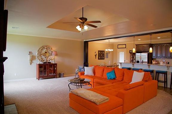 SELLER WILL PAY ALLOWABLE CLOSING COSTS FOR BUYER(S) Fantastic open floor plan. Kitchen island looking out into great room. Decorator touches throughout. Master bedroom closet is also a safe room. Walk in master shower, separate tub. Covered patio.Corner lot. Under cabinet lighting, Crown molding in living room, kitchen, and hall. Surround sound.Custom columns, Built in entertainment center. Extra large attic with flooring.Seller offering closing costs up to $6,500 with list price offer!!!!!