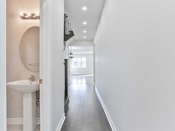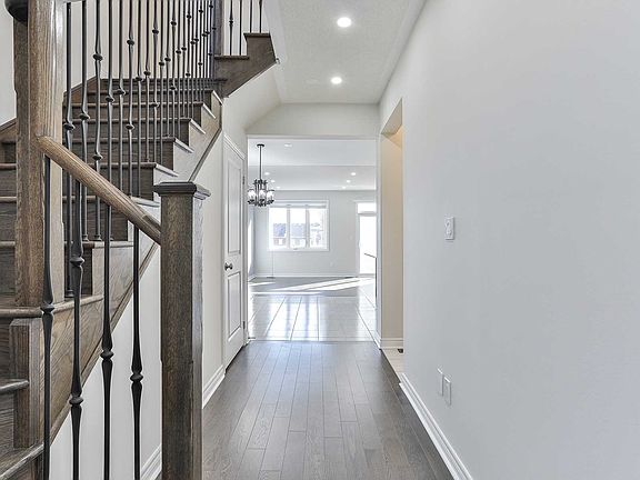 A Beautiful Modern 1 Yr -Old 4 Bdrm End Unit Town In The Sough After Picturesque Community Of New Seaton. Close To Hwy 401 & 407 W/Many Conveniences Around The Corner. Home Atmosphere Is Like Semi W/Large Bright Windows. Landscaped Front Yard Leading Into A 9Ft Ceiling/M Double-Door Entrance & Fabulous Iron Spindles On Staircase Captivates An Alluring Welcome. Newly Updated Backsplash, Pot Lights, And 2 Sink Vanity In Master (2021). R/I For Electric Vehicles.