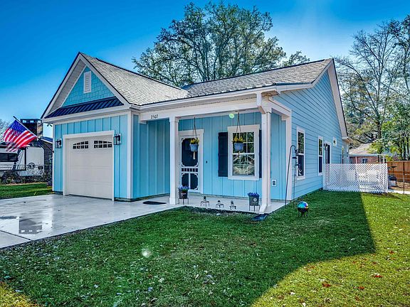Perfect starter home for a first time home buyer or someone looking to downsize who likes attention to detail and craftsmanship at every turn! This 3 bedroom, 2 bath is the perfect mix of coastal trendy, sophistication, and charm. You won't find any carpeting throughout the home, but you WILL find loaded upgrades such as high base boards/door casing, crown molding, tray ceilings, and recessed lighting to name a few! The exterior of the home is an upgraded fiber cement siding that easily catches your attention and curb appeal with board and batten to boost the home's aesthetic. Through the warm and inviting living room packed with natural light, is the heart of the home-- into the kitchen. Loaded with stainless appliances and granite countertops with beautiful pendant lighting hanging gracefully above. The kitchen's cabinetry consists of white shaker cabinets, a timeless choice complemented by large pulls, making them easy to open while adding a modern, streamlined touch. For your convenience, each room has it's own ceiling fan with remote. The primary bedroom boasts tray ceilings with walk in closet and ensuite bathroom with double sinks and granite countertops as well. Stepping out onto the back patio is your own outdoor retreat with a gazebo at the center of the space offering a shaded area to unwind while enjoying the fresh air. Tucked along the perimeter are two outdoor sheds that provide practical storage solutions for tools, lawn equipment, or seasonal decor to keep everything organized and easily accessible. There is also a side patio off of the kitchen that leads to planter boxes for working on your green thumb. Unlike traditional new construction, this home sits on almost a quarter acre lot and is located just 5 minutes to downtown Conway while also Carolina Forest school district! Square footage is approximate and not guaranteed. Buyer is responsible for verification.