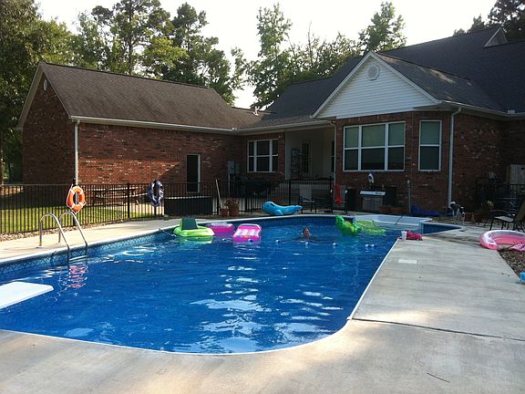 One owner, custom built home includes 900 square foot bonus room upstairs. 3 car garage with circle concrete drive. Home has landscaping with lighting and a 30 x 60 metal insulated shop. All 4 bedrooms are located in the corners of the home for added privacy. Granite counters are located in the kitchen that opens up the family room which includes a gas log fireplace and built in bookcases on either side of the mantel. The kitchen has extra cabinets and drawers for added storage. The home is all electric and very energy efficient with the added insulation and efficient windows. Hard wood floors are throughout the home downstairs with carpet being upstairs in the bonus room. The home has an alarm system also. The master bedroom has a bay window and is very spacious and open to the master bathroom which has his/hers granite vanities , oval jaccuzzi tub, separate shower with seating, large closet with built in chest of drawers and separate for the potty. There is a large patio off of the back porch that leads to the saltwater swimming. Tons of closet and storage space is included in this home. The trim work is a must to be seen in this home. There is a formal dining room and a breakfast area , both off of the kitchen. The home has a large foyer and a study/den area that is off of foyer.
