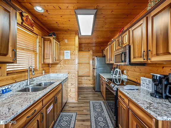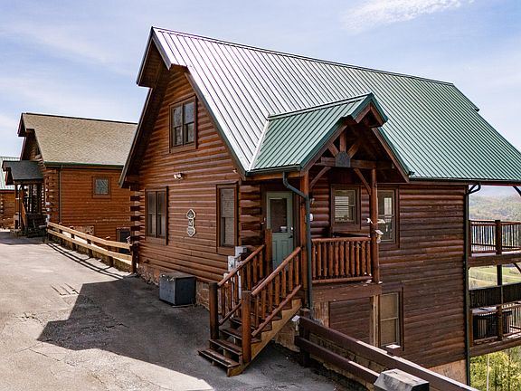 Located in the sought-after Legacy Mountain Resort, this upgraded 2-bedroom, 2-bathroom cabin offers some of the most stunning, unobstructed views in all of Sevier County—the kind of panoramic Smoky Mountain backdrop that short-term renters consistently seek out. Perched just 10 minutes from the heart of Pigeon Forge, this cabin spans over 2,000 square feet across three levels, each with full-length walls of glass showcasing sweeping views of the Great Smoky Mountains National Park. The main level features a well-equipped kitchen with granite countertops, stainless steel appliances, and new cabinetry. The open-concept living room is warm and welcoming, furnished with high-end aspen and Amish-style log furniture, and anchored by a beautiful fireplace. Also on this level is the first king suite, complete with an en-suite bathroom and direct access to the main-level deck, where the mountain views are truly second to none. Upstairs, the open loft serves as a flexible sleeping space with two sets of bunk beds and incredible views that rival the main level—ideal for families or group rentals. The lower level includes a spacious recreation room with a pool table, arcade console, and direct deck access. The second bedroom with en-suite bath is also located on this level, creating a functional layout with privacy for multiple guests. The cabin has been well cared for, with several notable upgrades completed over the past five years. These include a new metal roof, new carpet, updated HVAC unit, new kitchen cabinets, new dishwasher, new outdoor furniture, new pool table, new bunk beds in the loft, and a new living room couch. As part of the Legacy Mountain Resort HOA, owners and guests also enjoy access to community amenities such as a clubhouse, fitness center, and seasonal outdoor pool. (Please note: amenity photos shown are community-owned and not privately owned by the seller.) This cabin has a proven rental history, performing consistently year after year as a successful short-term rental. Whether you're an investor looking for a high-demand, view-driven property or a buyer seeking a mountain retreat with strong rental upside, this property delivers on both lifestyle and return.