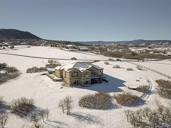 Amazing stucco/stone ranch with finished walkout basement on 4.5 acres with Views from every room! Located in the Keene Ranch Community near Castle Rock, with views of Mt. Evans from the back deck. Main level offers solid Alder doors, hardwood flooring, and hand troweled walls, Formal Dining Room with Butlers Pantry, Great Room with stone fireplace, Main Floor Laundry with sink and expansive windows throughout! Spacious eat-in Kitchen features granite-slab countertops with custom backsplash, pantry and huge center island with additional countertop seating. Main-floor Master features 5-piece bathroom with deep oversized tub, double shower head and walk in closet. Finished basement has 10ft ceilings, Huge Family Room, 3 bedroom and 2 bathrooms. Oversized 3 car Finished garage. Keene Ranch allows up to a total of 4 horses/donkeys/mules per site. Homeowners enjoy 16 miles of maintained and accessible riding trails within the community.