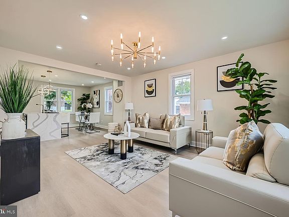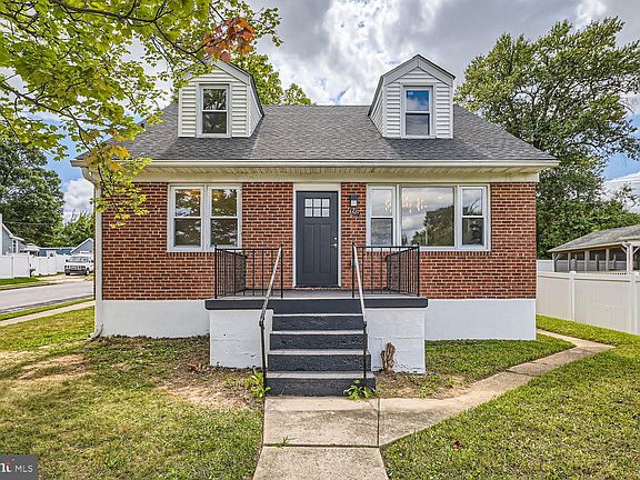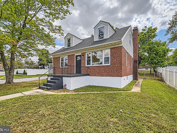 A beautiful transformation has taken place behind the door of this 5BR/2BA brick cape cod located on a spacious corner lot in the neighborhood of Woodhome Heights. Walk up to the large front porch and open the door into a home filled with tons of natural light, high end electric and plumbing fixtures, easy care flooring, and the open concept floor plan homeowners are seeking. The large living room opens nicely into the dining room and an amazing kitchen. The kitchen features plenty of cabinets to the ceiling, stainless steel appliances, quartz countertops with a decorative tiled backsplash, and a deep sink set into a large island boasting not one but two waterfall edges, pendant lighting, and breakfast seating for two or more. Down the hall is a spacious primary bedroom, a sizable secondary bedroom, and a newly remodeled full bath. Upstairs you will find two similar sized bedrooms with double closest and hidden storage. The lower level is finished offering additional living space featuring a large family room with a brick fireplace, a full bath with walk-in shower, laundry, storage, and a walk-out to the fenced yard. From the kitchen step outside to a yard filled with green space and tons of possibilities. This home is move-in ready with so much to offer new homeowners and is located within close proximity to shopping, restaurants, and commuter routes.