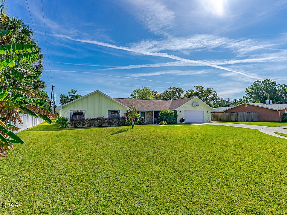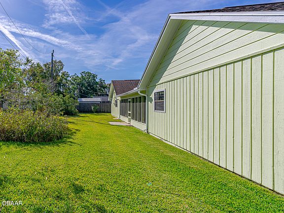 You will be welcomed home by this charming property located on a large, landscaped lot at the end of a cul-de-sac in the heart of South Daytona! The front porch invites you inside to the open-concept kitchen and living room that flows seamlessly and is accentuated by high ceilings and a cozy, wood-burning fireplace. Space and storage will not be an issue here! Spread out in this split floor plan home featuring over 2,100 sf with 4 large bedrooms, 3 full bathrooms, a 2.5 car garage, AND a large bonus room that could be used for endless possibilities! On one side of the home, you'll find the huge primary bedroom with an ensuite bathroom. On the other side of the home and down the hall, you will find the 3 bedrooms with one of the bedrooms featuring a full ensuite bathroom Continued... and additional guest bath. You'll undoubtedly enjoy outdoor living with 2 sets of French doors that lead you out to the 30X14 screened in, covered porch. The home also includes a large inside laundry room, plenty of garage storage, and no HOA to worry about. Located close to grocery stores, parks, restaurants, the Intercoastal, and the beach! The roof was replaced in 2016, the Water heater is 2023, and HVAC is 2014. Affordable homes with this much square footage do not come to the market often. If space and comfort have been what you are looking for, this is the home for you!