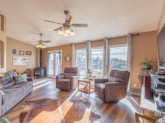 Discover your dream home in beautiful, quaint Homedale! This 4-bedroom, 2-bathroom home offers comfort and convenience with central air, heat, and a cozy wood stove. Sitting on a spacious 1-acre lot, the property features a massive detached garage/shop with 220 power and a separate office—also with a wood stove. Enjoy pressurized irrigation, underground sprinklers, and plenty of room for RV parking, animals, and storage. As a bonus, the subdivision includes a private, stocked pond for homeowners to enjoy fishing. Take in the stunning views and make this peaceful retreat your own!