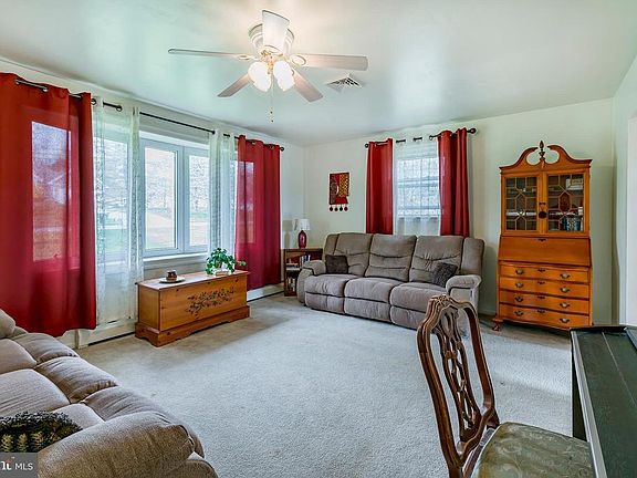 Enjoy your bonfires with picturesque views! This ELCO home is situated on a .46 acre lot which backs to farmland with a mountain ridge backdrop. 3 Bedrooms, 1.5 Baths & finished lower level family room which has a brick hearth with a propane heater and a walk out basement. Water softer system & New roof and Heat Pump & AC in 2016! The long driveway and parking area can accommodate 10 cars. Additionally, there is a 2 car garage and a detached garage/shed. Book your showing today!