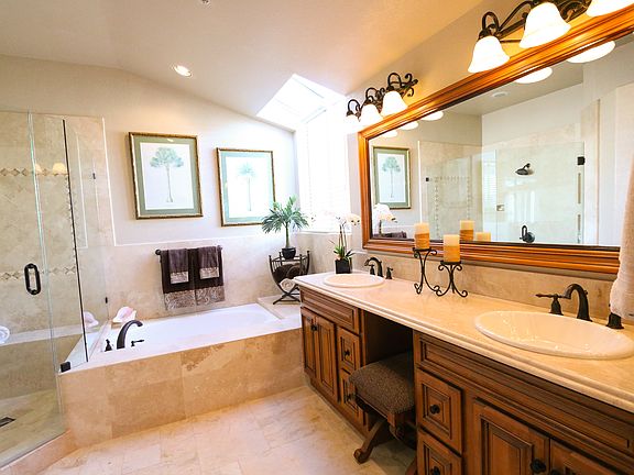 Stunning turnkey home conveniently located in the highly sought after community of Forster Ranch, close to beaches walking and hiking paths, schools and downtown. Pride of ownership shows in every room, starting at the custom double front doors. This home features 4 B/R and 2.5 Baths, formal living and dining room and family room with stone fire place and dry bar. Kitchen with high end stainless appliances and granite counters, Franke instant hot water, wine cooler. Sound system inside and out. Tumbled marble flooring, base and crown mldg., custom paint, plantation shutters throughout, custom glass entry doors to laundry and pantry, remodeled guest and master bath rooms with new cabinets and fixtures, granite counters, new walk in shower in guest bath. Any mans dream garage with Perkins flooring, new cabinets and work station, and slat wall organization system. The backyard is a tropical entertainers delight featuring a pebble tec salt water pool and spa, fire pit, outdoor kitchen and bar area, custom flagstone and a sprinkler and drip irrigation system. This home is a must see!