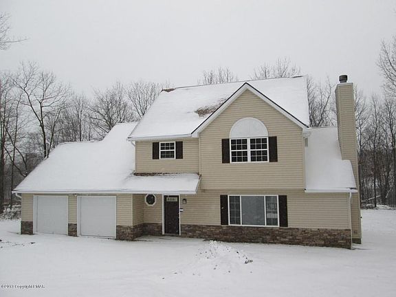 ALL NEW INSIDE AND OUT!! LOW TAXES only $4689. New exterior stone veneer, gutters, insulated garage doors, lighting, pressure washed and stained deck. Interior new kitchen, counters, door hardware, vanities, toilets, faucets, flooring, paint, lighting, heat thermostats, water heater and more. Large master suite with lots of closet space and large bath with whirpool tub, seperate shower, and double sink. Tile floors in baths and entry. Large private 1.4 acre lot, Nice open concept kitchen with plenty of counter space, clean brick fireplace appears to have never been used. Lots of storage in garage with cabinets and attic access stairs and its finished, painted and even has heat!! Sale price includes $1000 towards new appliances. Corporate seller is a licensed Realtor. Call Thad 570-629-8500