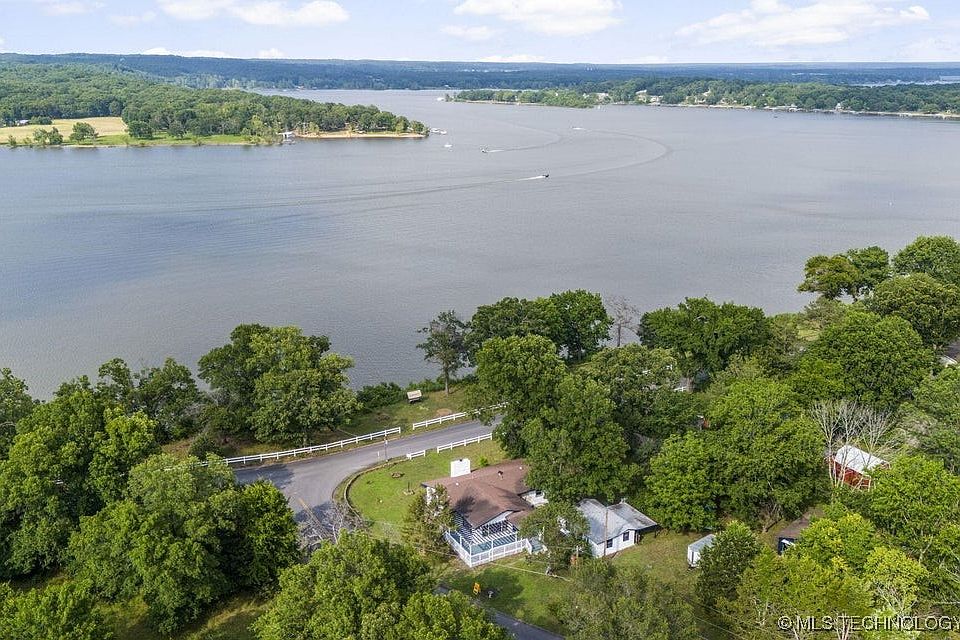 REMODELED LAKEFRONT WITH A DOCK AND AN UNBEATABLE VIEW! Situated on a 0.94-acre corner lot, this stunning residence features 3 bedrooms, 2 bathrooms, and 2 spacious living areas, all within a split floor plan. Not to mention, a beautiful rock fireplace, a partial wrap-around porch, and new windows throughout. The entire home has been recently updated, showcasing fresh paint inside and out, new flooring, granite countertops, new appliances, trim and baseboards, ceiling fans, fixtures, and more. There's also an additional building that could easily be converted into an apartment, and a detached oversized 1-car garage. A new roof and HVAC system will be installed prior to closing. Schedule your showing & let the beauty of Grand Lake become your everyday reality!