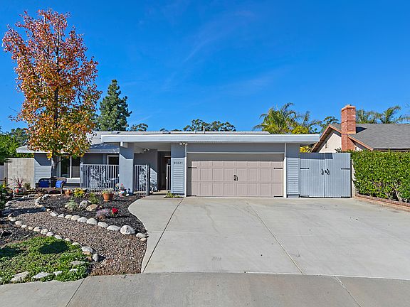 Don't miss out on this Mission Viejo charmer! Single-level home featuring newly installed solar panels (owned), skylights, energy-efficient roof, American Standard air conditioning/heating unit, Noritz tankless water heater and dual paned windows/slider. This highly desirable 4 bedroom, 2 bathroom floor plan has approx. 1460 sf of living space with hardwood flooring throughout the main living area, carpeting in the bedrooms, and tile in bathrooms. Kitchen has been updated with newer appliances, Quartz counters, single-oven electric range, microwave, and soft-close white cabinets. Living room features vaulted ceilings, skylights, gas fireplace, ceiling fan, and access to backyard through sliding glass door. You must see the oversized, private backyard that has been recently updated with high-end synthetic grass, covered patio with ceiling fan, fruit trees, and a fire pit area...perfect for entertaining! Also in the backyard is a wooden shed with over 120 sf and complete with tall ceilings and electricity too! The attached garage has epoxy flooring and plenty of storage space. Extra wide driveway is perfect for additional parking. Conveniently located near award-winning schools, parks, restaurants, and shopping.